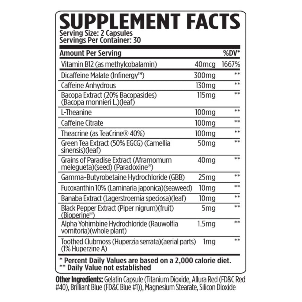 - Energy: 40mcg of B12, 400 mg caffeine & 1.5mg Of Yohimbine provides an intense energy surge unlike any other making your cardio, training sessions as intense as ever!