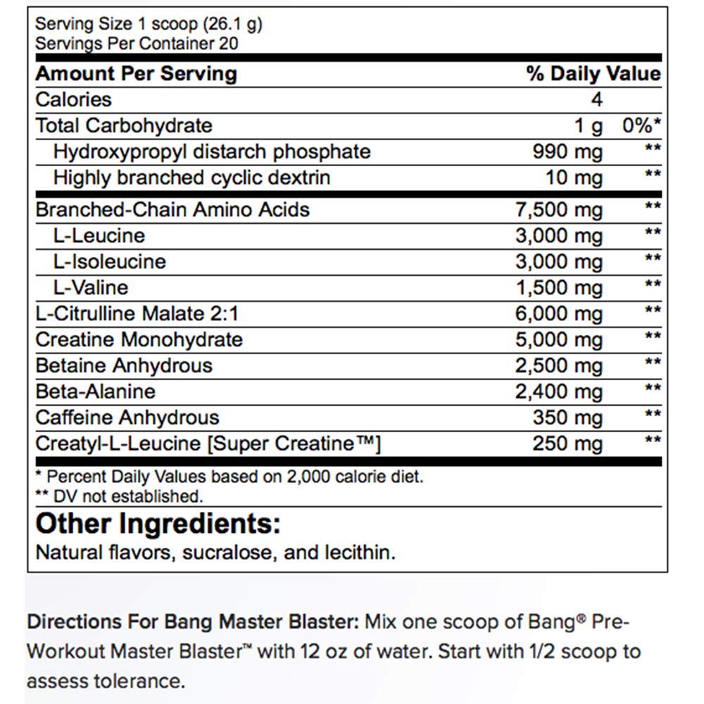 - Strong & Great taste!: All ingredients are fully disclosed on the label because we are proud that Bang Master Blaster is the most potent, best tasting pre-workout supplement in history!